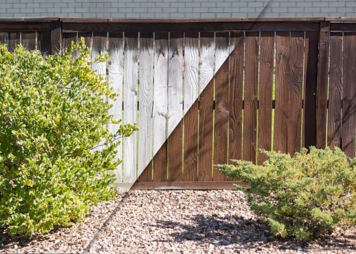 Protect your wood fence with a UV-resistant strain that has a fungicide. It will help slow down the effects of the sun on the wood. Various stains come in a wide range of colors and are classified as solid, semi-transparent, or penetrating.